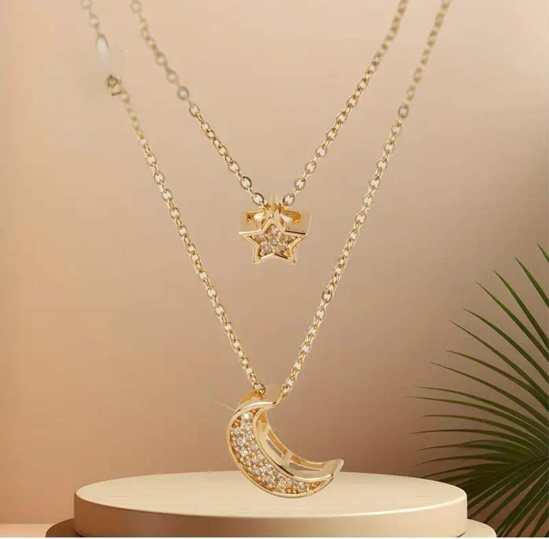 قلادة قمر ونجمه مرصعه بلاحجار الامعه الانيقه