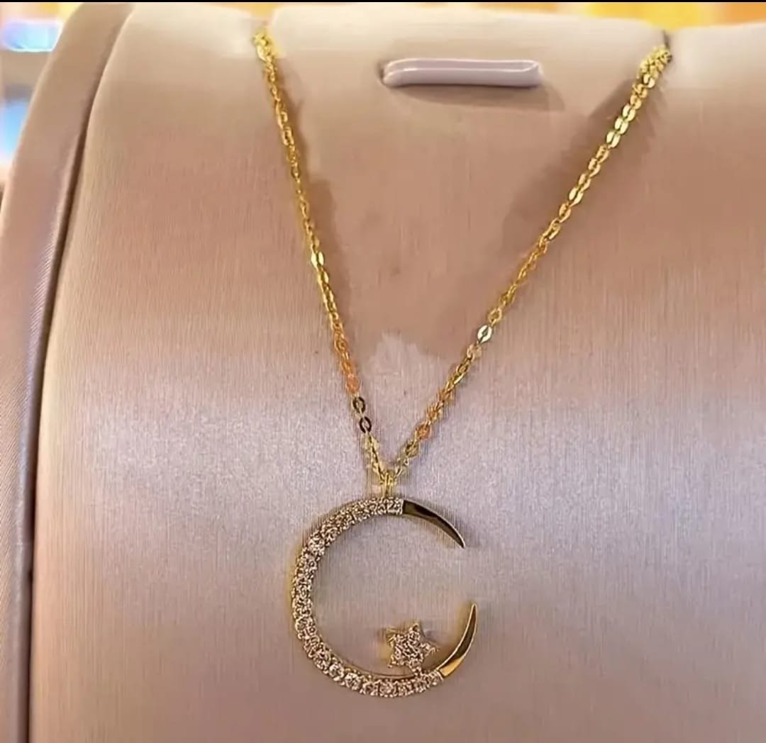 قلادة قمر ونجمه مرصعه بلاحجار الامعه الانيقه